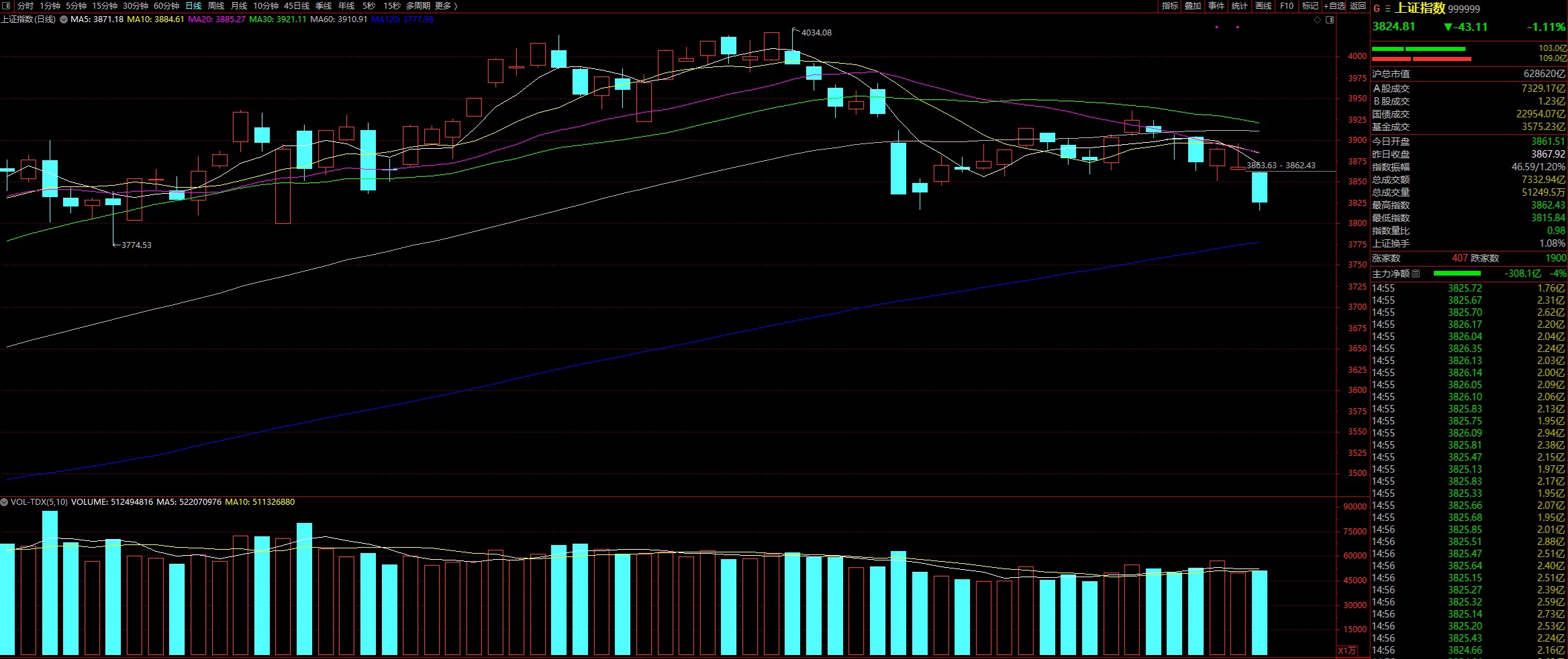 接受金融投资网记者采访的证券分析师吴帆表示:“大盘在惯性作用下可能还有向下空间,短期需关注3800点整数关口的支撑,以及缓慢上移的半年线的支撑。结合市场环境,大盘整体向下空间不大,预计将以时间换空间的方式完成调整,震荡时间恐将拉长。”