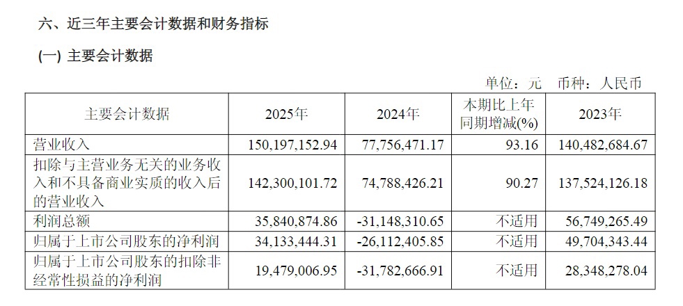 经过一年的努力,*ST天微退市与否来到了关键节点。随着2025年年报的披露,公司成绩单也随之出炉。2025年,公司实现营业收入1.5亿元,同比增长93.16%;实现归属于上市公司股东的净利润3413.34万元,扭亏为盈。