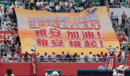 在雅安比赛现场,品牌Tifo在主看台展开。