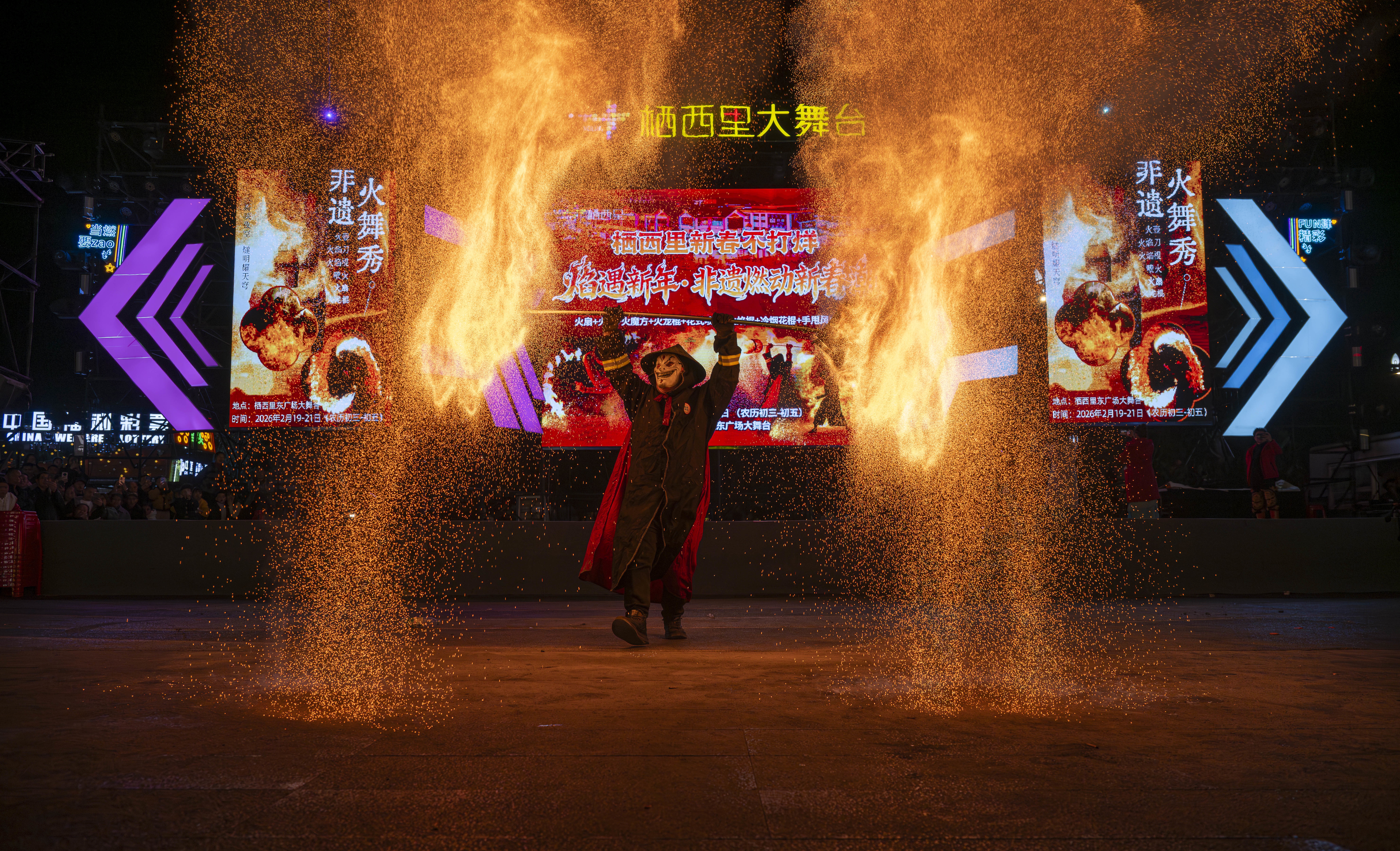 城区人头攒动,仁寿栖西里商业街区非遗火壶表演精彩上演,特色小吃香味弥漫;商场内欢声笑语不断,市民挑选着琳琅满目的新春年货,热闹的氛围彰显着新春消费的旺盛活力。乡村田野间,非遗民俗展演轮番上演,变脸绝技引得观众阵阵喝彩,彩龙飞舞翻腾出海纳百川的豪情,独具特色的抬工号子,以精湛的技艺展现着仁寿传统文化的魅力,让群众在家门口尽享文化盛宴。