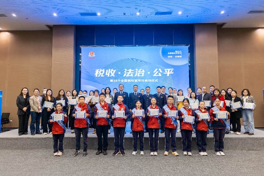 4月1日,国家税务总局成都市龙泉驿区税务局紧扣“税收·法治·公平”主题,在龙泉驿区民营经济发展促进中心举行第35个全国税收宣传月启动仪式。区税务局局领导和部门负责人,区民营经济促进中心代表,大企业、小微企业、MCN机构、涉税中介代表以及向阳桥中学的师生到场参与活动。