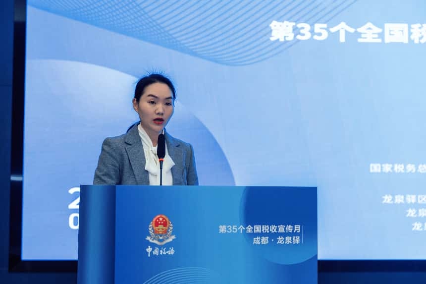 成都市龙泉驿区财税服务协会代表邓春叶以行业视角作出庄严承诺,从坚守法治底线、恪守职业操守、精进专业能力、主动担当作为四个方面,表达了恪守职业道德、做诚信纳税推动者的坚定决心。她表示,涉税中介作为税务机关与纳税人之间的专业纽带,将以专业力量守护税收安全,用诚信服务传递行业温度,共同营造风清气正、公平有序的税收服务环境。